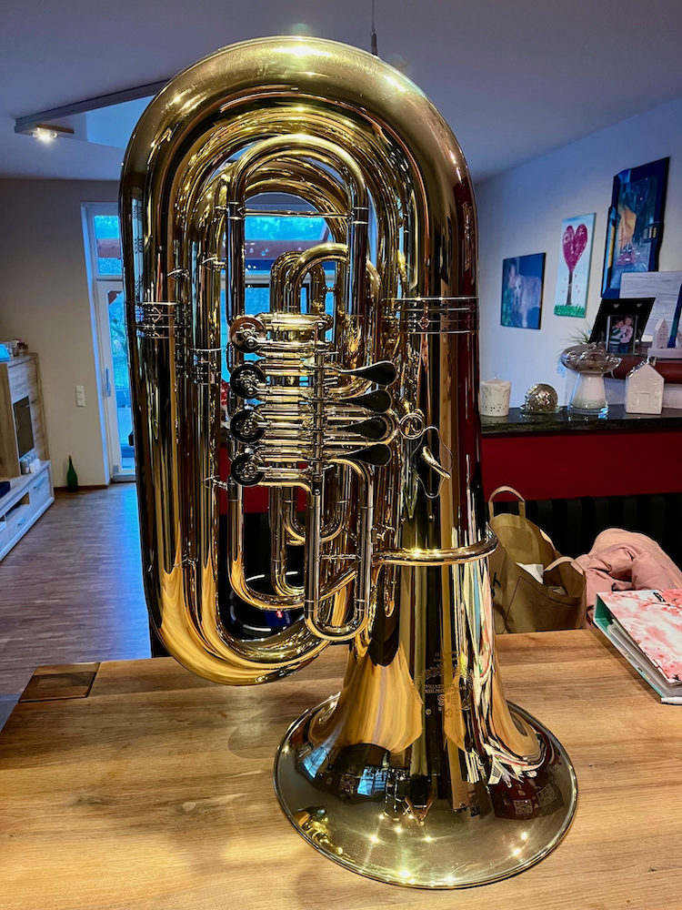 Die Tuba habe ich im April 2023 als B-Ware mit leichter Beschädigung am Schallstück gekauft.